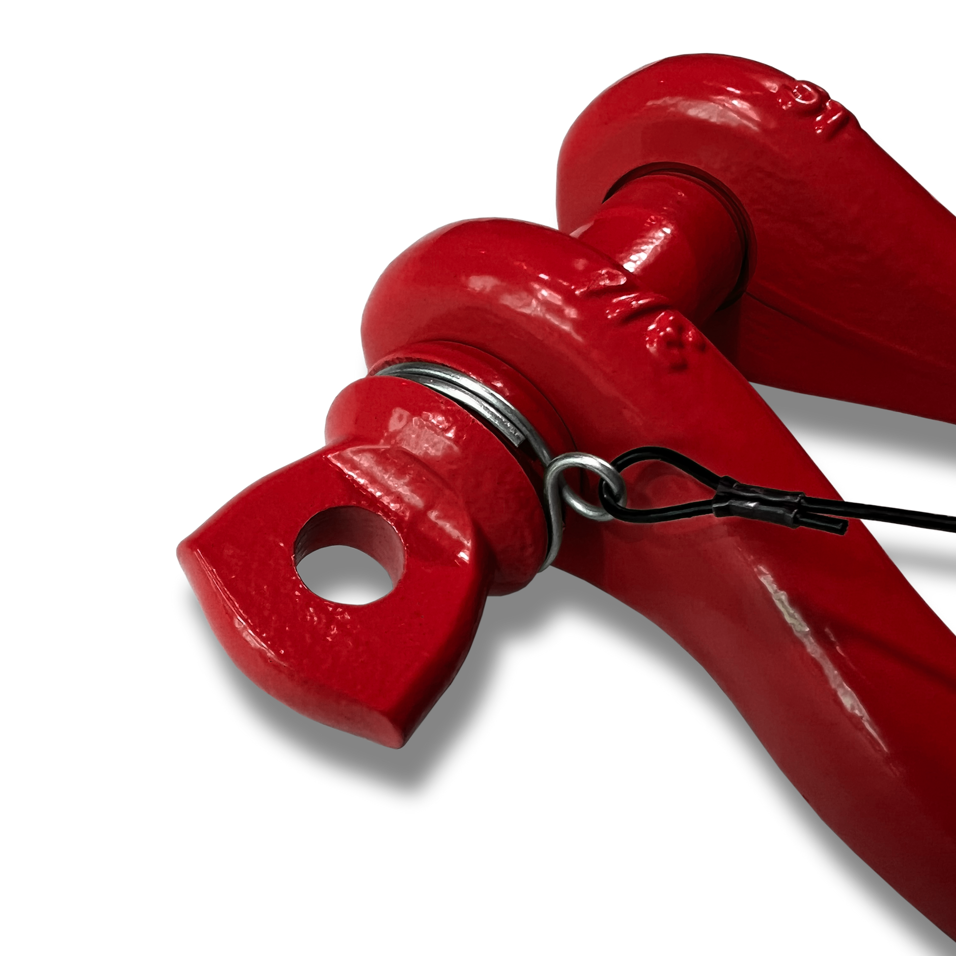 A twist (pun intented) on a standard D-ring bow recovery shackle our new flame red B'oh shackle incorporates an innovative Two Finger Spin Pin design to keep your pins and shackles joined together out on the trail. No more lost pins!