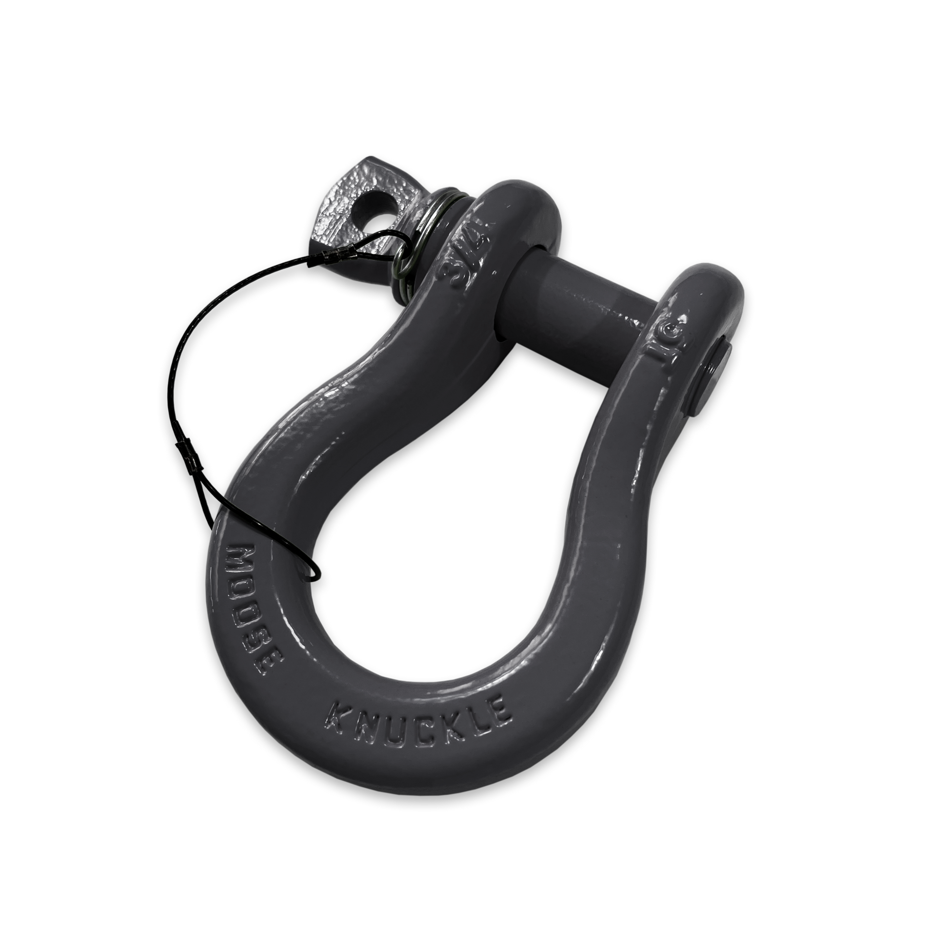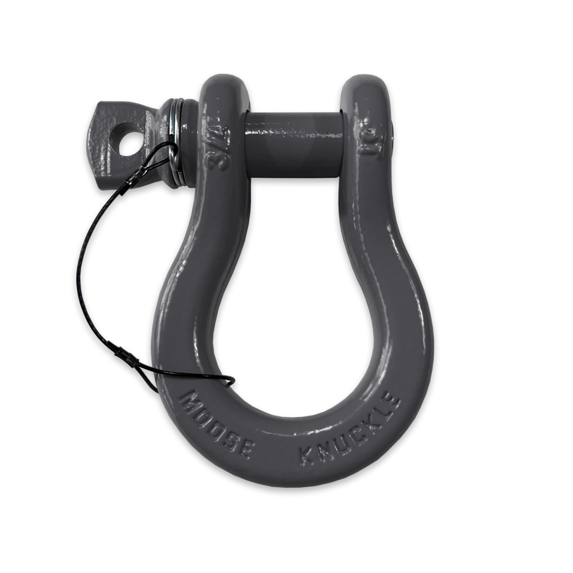 A twist (pun intented) on a standard D-ring bow recovery shackle our new gun gray B'oh shackle incorporates an innovative Two Finger Spin Pin design to keep your pins and shackles joined together out on the trail. No more lost pins!