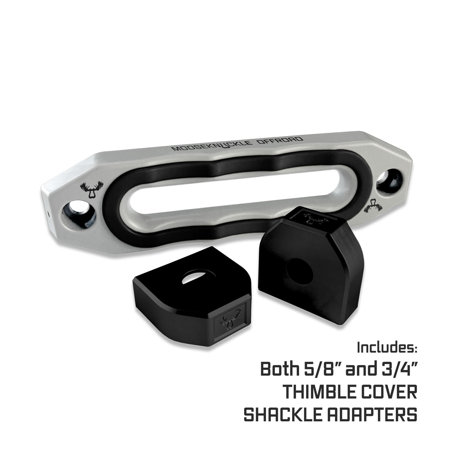 Fairlead Body: The fairlead body is made from 6061 aluminum with standard 10 inch mounting hole spacing, anodized in 6 popular colors and highlighted with subtle laser etched Moose Knuckle Offroad branding.