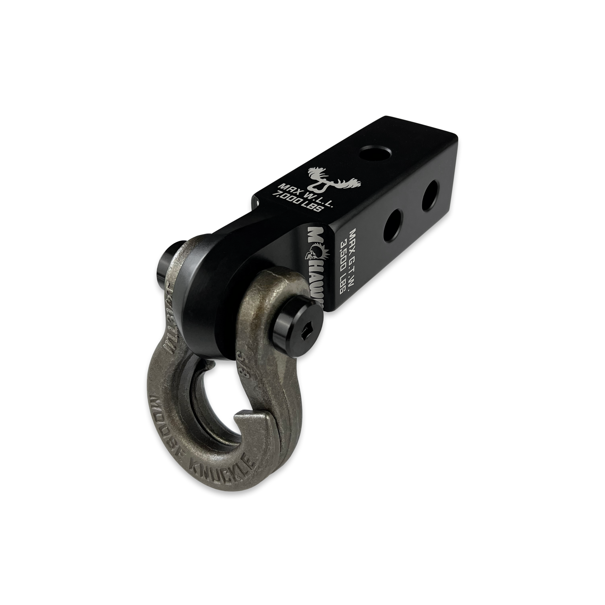 Our Mohawk 2.0 x 5/8 shackle receiver has a narrower shackle mounting point width than its predecessor and is made specifically for smaller 5/8 shackle ear widths but still offers the flexibility to mount larger 3/4 shackles also. The Mohawk is warm drop forged using a stronger aluminum compared to the more commonly used 6061-T6 aluminum. Instead we use 6082 for its higher strength and better corrosion resistance along with a forging technique that orientates the grain flow of the aluminum to maximize the strength of your connection point providing a work load limit of 7,000lbs.