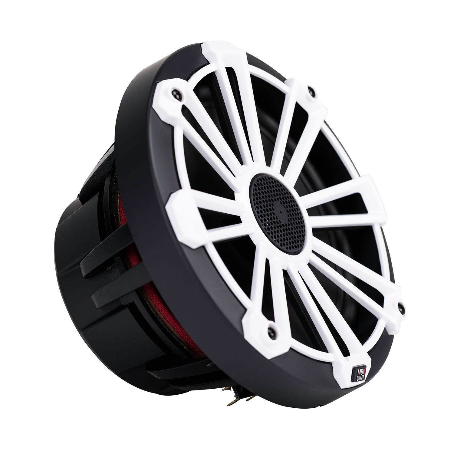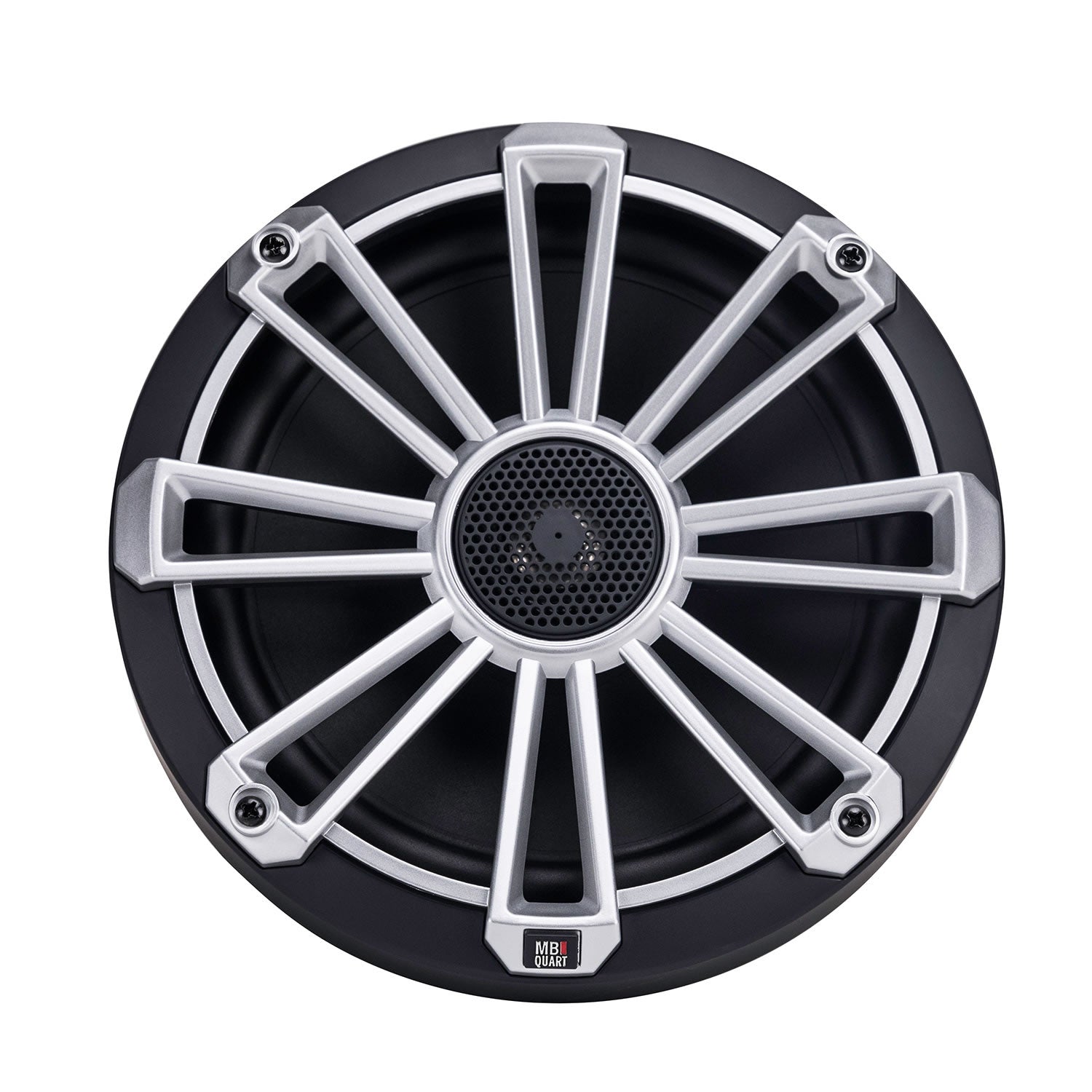 The award winning MB Quart Nautic Premium waterproof marine certified, 8 inch coaxial speaker for boat, RV and off-road vehicle audio installations. Sold in pairs with 3 color grill options included in each box.
